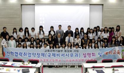 이 날 참석한 40명의 학생들은 비서․사무직 직무분석을 통해 개발된 프로그램을 교육 받고, 안산1대학 국제비서사무과에 진학해, 산업체와 대학에서 공동개발한 맞춤형 교육과정을 이수해 비서사무직 전문인력으로 양성된다.