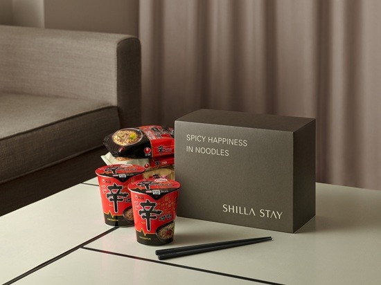 K푸드 트렌드에 맞춰 출시된 ‘스파이시 해피니스 인 신라스테이’ 패키지는 한국 라면 브랜드 ‘농심 신라면’과의 협업으로, 객실 1박과 함께 ‘신라스테이X신라면 기프트 박스’를 제공한다. 기프트 박스엔 신라면, 건면, 블랙, 툼바 등 봉지라면 4종과 신라면 작은 컵 2개, 한정판 신라스테이 젓가락 2세트가 포함됐다.