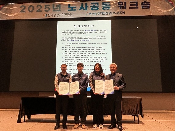 한국승강기안전공단은 지난 3일 경기도 화성시 소재 라비돌리조트에서 개최된 노사공동 워크숍에서 이사장, 상임이사, 노동조합 위원장을 비롯한 노동조합 집행부, 지부장, 대의원 등이 참석한 가운데 ‘윤리·인권경영 헌장 개정 선포식’을 개최했다고 4일 밝혔다.