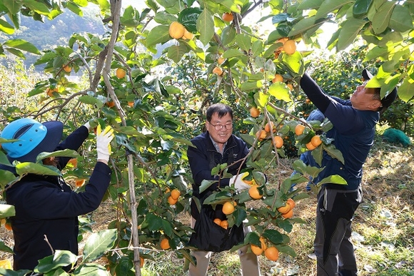 산청군, 지역 감 수확 농가서 일손돕기 '구슬땀'