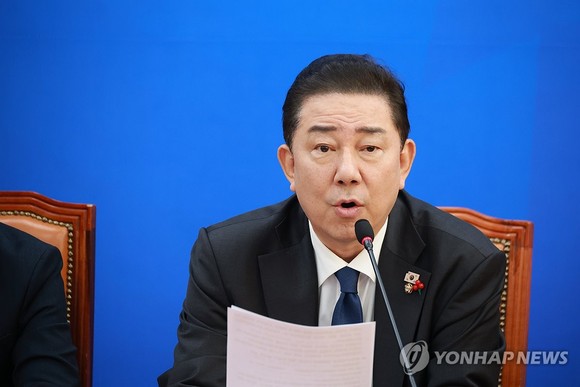 민주당 김병기 원내대표가 18일 국회에서 열린 정책조정회의에 참석해 발언하고 있다. (사진=연합뉴스)