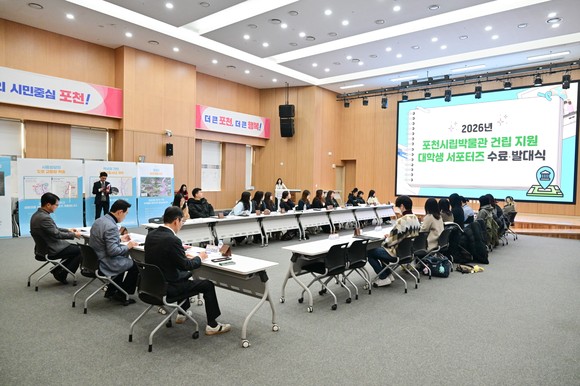 포천시는 시청 대회의실에서 ‘2025년 하반기 대학생 서포터즈 수료식’과 ‘2026년 상반기 대학생 서포터즈 발대식’을 잇달아 개최했다. 지난 2024년 첫발을 뗀 이 프로그램은 지역 대학생들이 포천시립박물관 건립 추진과 포천역사문화관 운영 전반을 지원하는 시민 참여형 프로젝트다.