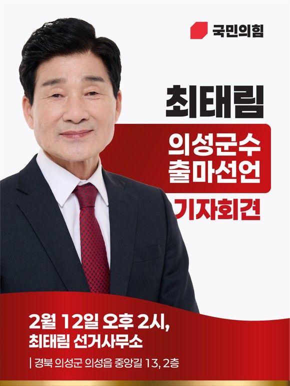 최태림 경북도의원이 12일 오후 2시 의성에서 기자회견을 열고 의성군수 출마를 공식 선언한다.