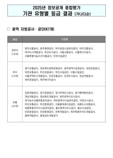 부산도시공사가 행정안전부 주관 ‘2025년 정보공개 종합평가’에서 최고 등급인 ‘최우수’를 획득했다.