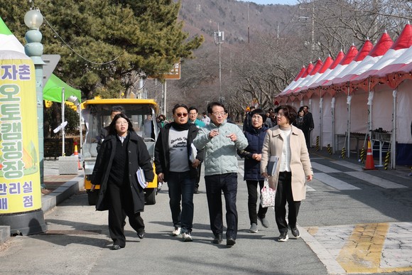 21일 개막식이 열리는 유채꽃밭 일원과 화목가마 행사 구간의 안전 통제 계획을 확인하고, 많은 인파가 몰릴 것으로 예상되는 공연 일정에 대비한 관람객 분산 유도 대책도 점검했다. 축제 기간 대형버스와 자가용 이용객 증가에 대비하여 주차 공간 확보 및 분산 운영 계획을 재점검하고, 셔틀버스 운영과 교통 통제 구간 설정 등 교통 대책도 보완하였다.