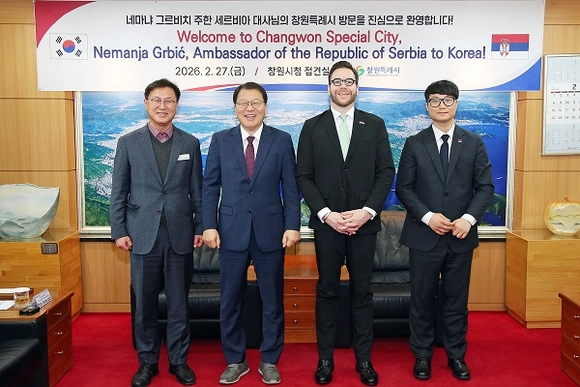 경남 창원시는 27일 오전 시청 접견실에서 장금용 창원시장 권한대행이 네마냐 그르비치(Nemanja GRBIĆ) 주한 세르비아 대사를 접견하고, 양국 지방정부 간 교류·협력 방안을 논의했다고 밝혔다.