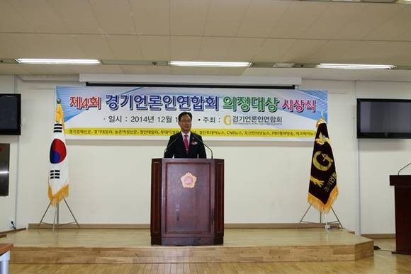 축사에 나선 경기도의회 새누리당 당대표는 "벌서 4회를 맞이한 경언련의 의정대상 수상식을 축하하며 수상자들은 앞으로도 지역 발전을 앞당기는 역할과 기여를 통해 끊임없이 노력해 달라"고 당부했다.