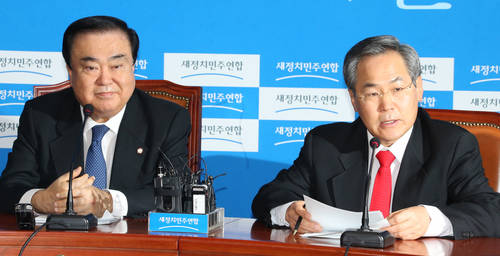 ▲새정치민주연합 우윤근 원내대표는 이날 원내대책회의에서 “재벌 대기업 곳간이 넘쳐나는데 서민 유리지갑만 털리고 있다”며 “세금부담을 경감하고 조세형평성을 높이기 위한 정책과 법인세 정상 환원을 적극적으로 검토하겠다”고 밝혔다. (사진=연합뉴스)