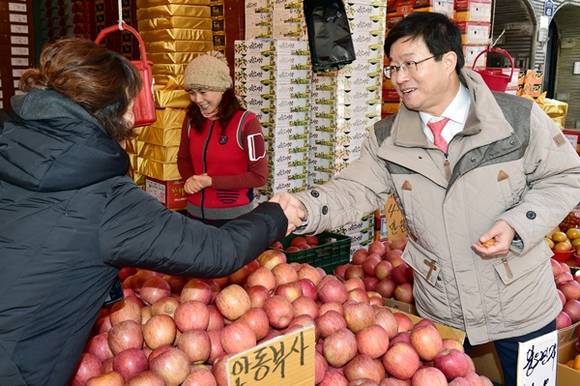 염태영 수원시장이 설 명절을 맞아 전통시장 상인들을 격려하기 위해 지난 13일 정자시장(장안구 정자동)을 방문했다.