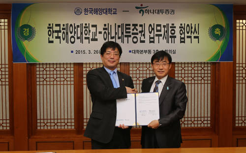 이번 협약은 한국해양대 도근영 기획처장, 하나대투증권 김인규 영남지역본부장 등 양 기관 관계자들이 참석한 가운데 이뤄졌으며 대학 발전과 사회 공헌을 위한 기부금 조성을 위해 마련됐다.