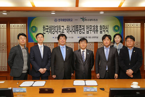 (CNB=권이재 기자) 한국해양대학교(총장 박한일)는 지난 5일 학내 본부 3층 소회의실에서 하나대투증권(주)(대표이사 장승철)와 업무협약을 체결했다고 밝혔다.