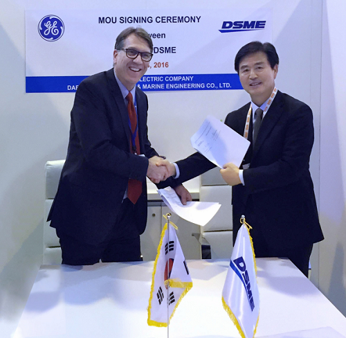 대우조선해양(대표이사 정성립)과 미국 GE社는 최근 미국 휴스턴에서 FPSO, FLNG 등 해양 생산설비 개발 사업에 대한 상호 협력을 골자로 한 양해각서를 체결하고 저유가 시대에도 지속 가능한 경쟁력 있는 FPSO, FLNG 등 해양 생산설비 신제품 개발을 위해 협력하기로 했다고 19일 밝혔다.