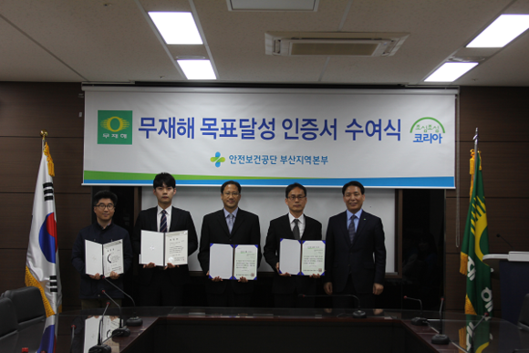 안전보건공단 부산지역본부(본부장 심재동)는 18일 오전 본부 사옥에서 부산환경공단 수영사업소(소장 강동효), 해양환경관리공단 해양환경교육원(원장 이재곤)에 무재해 목표달성 인증서를 수여하고 유공직원을 표창했다.