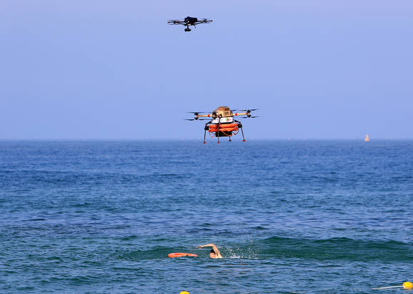 강릉시는 15일부터 내달 16일까지 한달 간 경포해수욕장 바다에 떠다니면서 피서객의 안전을 지키는 드론 인명구조대를 운영한다.