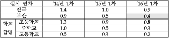 부산시교육청은 전국 시·도교육감이 공동으로 실시한 2016년 1차 학교폭력 실태조사 결과를 19일 발표했다.