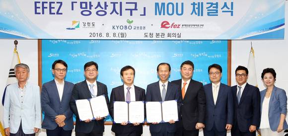 이날 협약식에는 최문순 도지사와 김해준 교보증권(주) 대표, 신동학 동해안권경제자유구역청장 등이 참석했다.