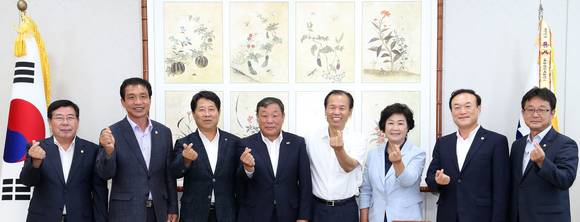 8일 오후 한의동 강원도시군의회의장협의회장 등 신임 회장단은 강원도청 통상상담실에서 최문순 강원도지사와 만남을 갖고 생활자치 역량강화를 위한 실천방안 등 폭넓은 의견을 교환했다. (사진=강원도청)