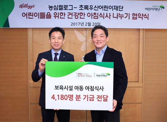 농심켈로그가 초록우산 어린이재단 본부에서 ‘어린이들을 위한 건강한 아침식사 나누기’ 협약(MOU)을 체결했다고 밝혔다.
