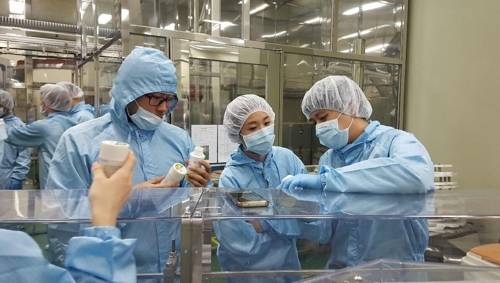 ▲한국야쿠르트와 협력사 직원이 공장 설비라인을 둘러보는 모습. (사진=한국야쿠르트)