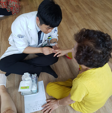 이번 의료봉사에는 해운대자생한방병원 의료진 3명이 참가했으며, 평소 척추나 관절 통증을 호소하는 60세 이상의 어르신 100여명을 대상으로 침치료와 한약처방 등을 실시해 큰 호응을 얻었다.