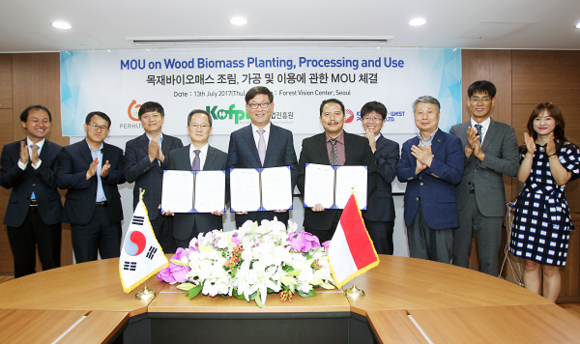 한국동서발전(주)(사장 직무대행 박희성)은 13일 한국임업진흥원 및 인도네시아 국영 영림공사와 서울 산림비젼센터에서 '목재바이오매스 연료 조림·가공 및 이용'에 관한 업무협약을 체결했다.