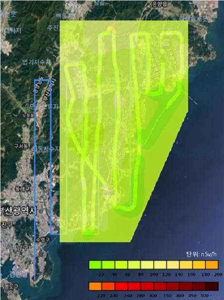 ▲공중 방사선 탐지결과-정상 준위(이상 없음). (사진제공=부산시)