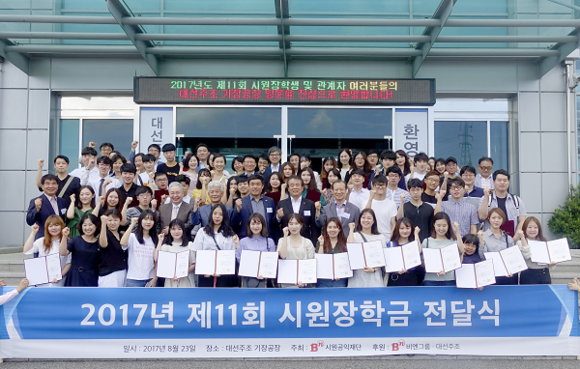 재단은 23일 대선주조 기장공장에서 '2017 제11회 시원장학금 전달식'을 갖고 부울경 22개 대학교의 사회복지학 전공생 52명에게 총 5200만원을 전달했다고 25일 밝혔다.
