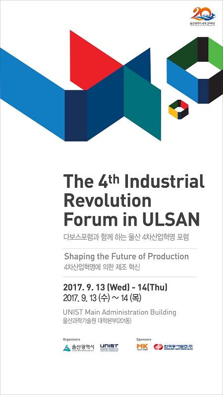 UNIST와 울산광역시는 오는 13일과 14일 UNIST 대학본부 4층 경동홀에서 '4차 산업혁명포럼 in ULSAN'을 개최한다고 5일 밝혔다.