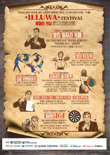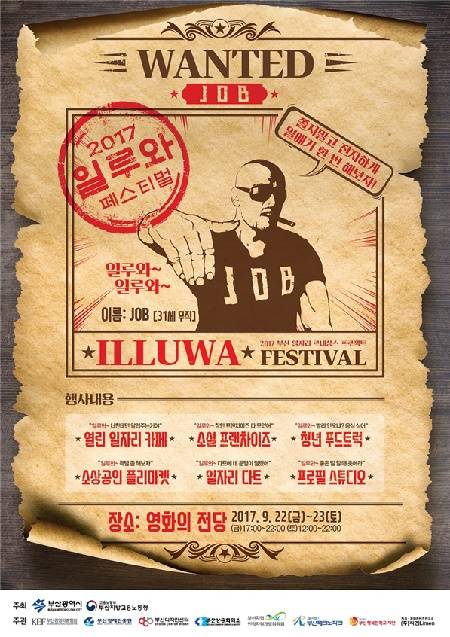 부산시는 새로운 형태의 일자리 축제인 '2017 일루와(ILLUWA) 페스티벌'을 오는 22일과 23일 이틀간 '영화의전당 야외광장' 에서 개최한다고 20일 밝혔다.