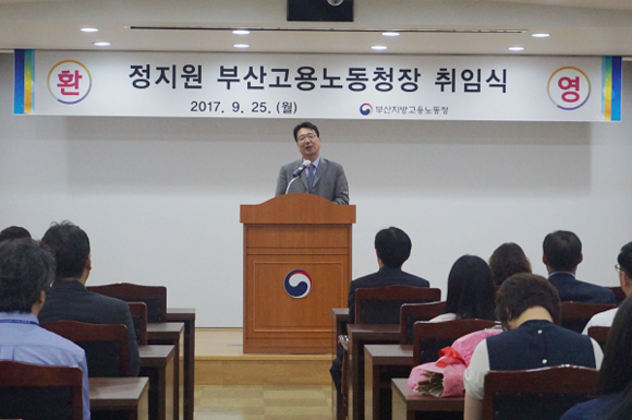 정지원 신임 청장은 이날 취임식에서 “우리나라 고용노동행정의 주요 이슈가 집중되어 있는 부산·울산·경남 지역을 맡게 되어 무거운 책임감을 느낀다”며 “새 정부 출범이후 고용노동행정에 대한 국민의 기대가 높은 만큼 우리 지역에 노사 화합과 신뢰를 바탕으로 모두가 상생하는 일터를 만들고, 더 나은 그리고 더 많은 일자리로 행복을 드릴 수 있는 현장중심 노동행정을 펼치겠다”고 각오를 밝혔다.