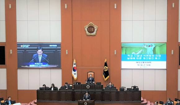 ▲해양교통위원회 박대근 의원(북구1)은 제265회 임시회 5분 자유발언에서 석면함유 시설물을 철거하고 하루 빨리 친환경 무석면 자재로 교육환경을 개선해야 한다"고 (사젠=CNB뉴스 이소정 기자)