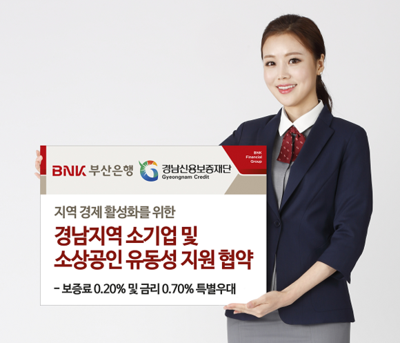 BNK금융그룹 부산은행(은행장 빈대인)은 오는 30일 경남신용보증재단(이사장 이광시)과 '경남지역 소기업 및 소상공인 유동성 지원 업무협약'을 체결한다고 밝혔다.