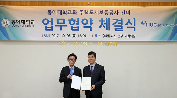 동아대학교는 26일 오후 승학캠퍼스 본부 대회의실에서 주택도시보증공사(HUG)와 산학협력 협약을 체결했다.