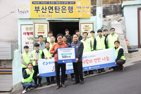 남부발전 부산발전본부는 15일 협력사 합동으로 사하구 감천동 일대에서 난방유 및 연탄 나눔활동을 시행했다고 밝혔다.
