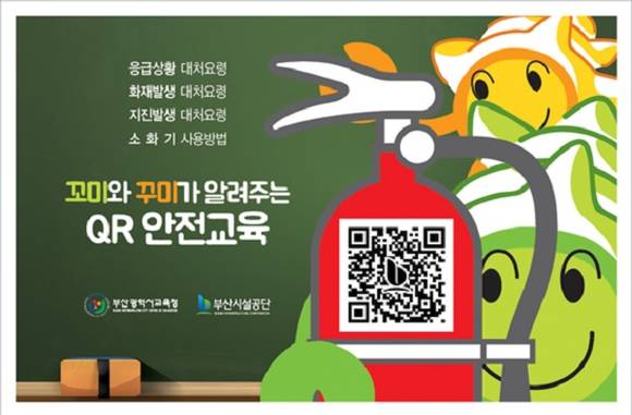 안전관련 QR코드가 담긴 포스터 4천장과 소화기 부착용 스티커 3만 장은 이번 달 말까지 교육청(본청)과 5개 교육지원청을 통해 부산시내 초·중·고와 지역 도서관에 배부될 예정이다.