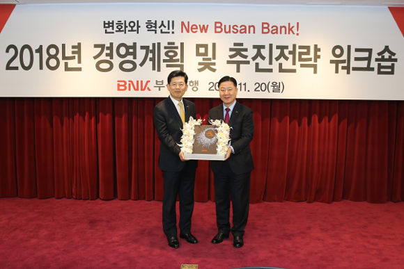 ▲왼쪽부터 부산은행 빈대인 은행장, 안감찬 경영기획본부장. (사진제공=부산은행)