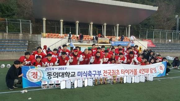 ▲동의대 미식축구팀 터틀 파이터스(감독 김용희)가 제58회 전국대학미식축구선수권대회(타이거볼)에서 4년 연속 우승을 달성했다. (사진제공=동의대)