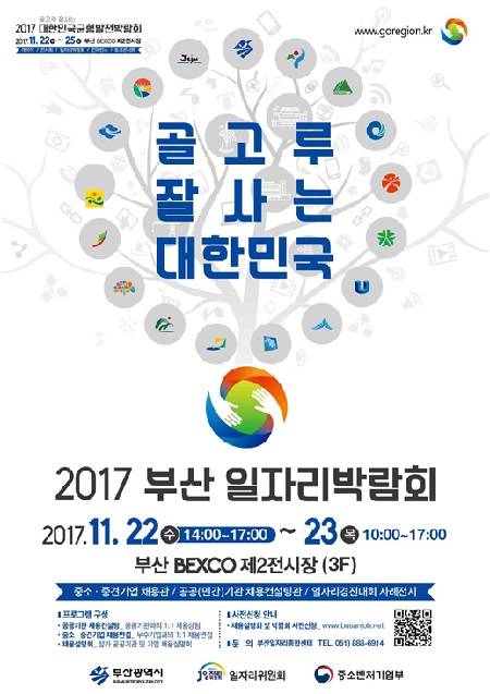 부산시는 오는 22일과 23일 오전 10시부터 오후 5시까지 벡스코 제2전시장(3층)에서 '2017 부산 일자리 박람회'를 개최한다.