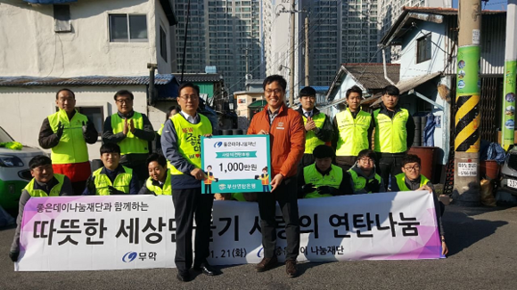 연탄은행에 전달 된 연탄은 부산 동구, 남구 등 기초수급대상자 및 차상위 계층의 연탄사용 가구 50여 세대의 동절기 난방을 위해 11월 말까지 전달될 예정이다. 좋은데이나눔재단은 겨울철 어려운 이웃을 돕기 위해 지난 2012년부터 매년 사랑의 연탄나눔 행사를 진행해오고 있다.