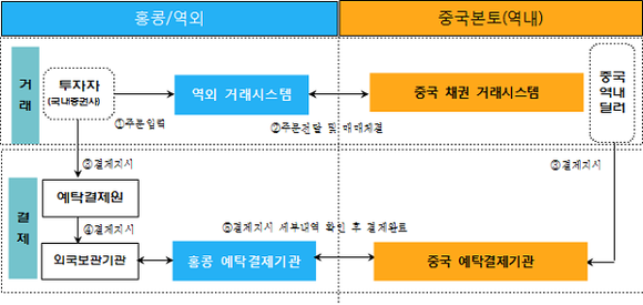 ▲중국-홍콩 채권통 거래 및 결제 흐름도. (표제공=예탁결제원)