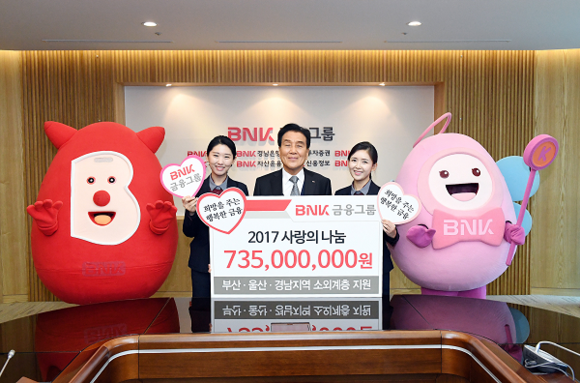BNK금융그룹(회장 김지완)은 부산·울산·경남 지역 소외계층을 대상으로 총 7억 3500만원 상당의 연말 나눔 사업을 펼친다고 23일 밝혔다.