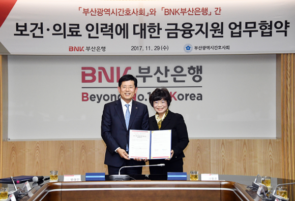 BNK금융그룹 부산은행(은행장 빈대인)은 29일 오후 본점에서 부산시간호사회와 '의료·보건 인력에 대한 금융지원 업무협약'을 체결했다.
