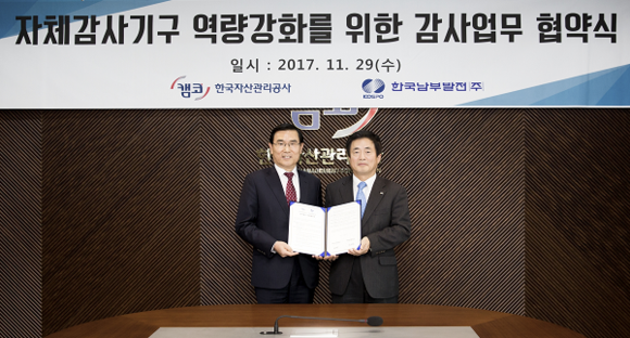남부발전은 29일 자산관리공사 대회의실에서 이와 같은 내용으로 '자체감사기구 역량강화를 위한 감사업무 협약'을 체결했다고 30일 밝혔다.
