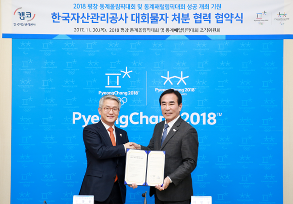 한국자산관리공사(캠코, 사장 문창용)는 2018 평창 동계올림픽대회 및 동계패럴림픽대회 조직위원회와 30일 조직위원회 평창 주사무소에서 올림픽 대회물자 처분 협력을 주요 내용으로 하는 포괄적 업무협약을 체결했다.