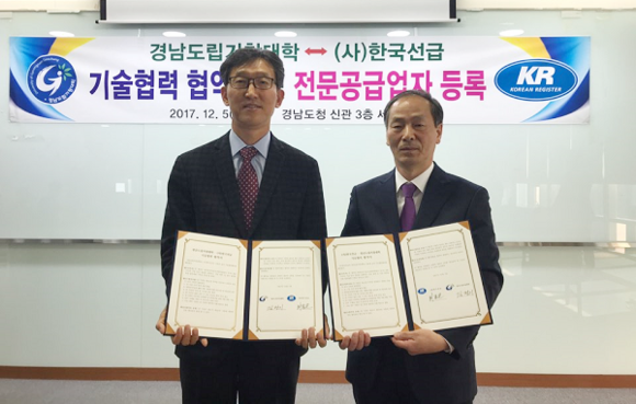 ▲오른쪽부터 한국선급 최종은 검사본부장, 경남도립거창대학 김정기 총장. (사진제공=한국선급)
