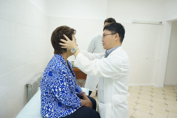 ▲어지럼증 환자를 진료중인 이환호 교수. (사진제공=고신대복음병원)