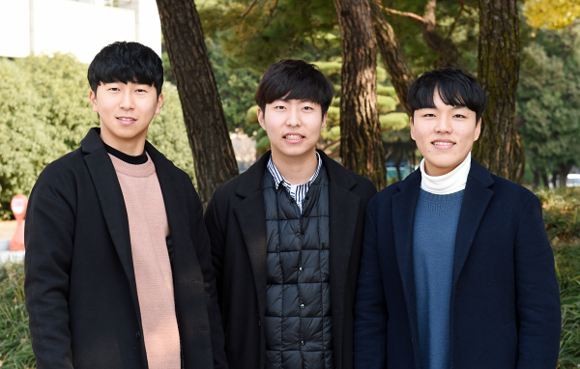 ▲'2017 캠퍼스 특허전략 유니버시아드'에서 특허청장상을 수상한 부경대 (왼쪽부터) 김한얼, 박성민, 조완수 학생. (사진제공=부경대)
