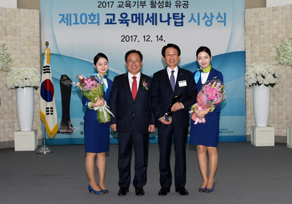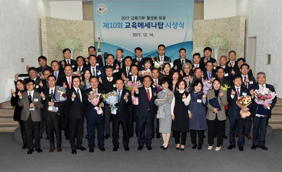 부산시교육청은 14일 오후 부산상공회의소에서 '제10회 교육메세나탑 시상식'을 열고 올해 교육사랑 나눔 교육기부 운동에 적극 참여한 우수 기업·기관·단체·개인 등 58명에게 교육메세나탑(24명)과 교육메세나패(20명), 감사장(14명)을 수여했다. (사진제공=부산교육청)