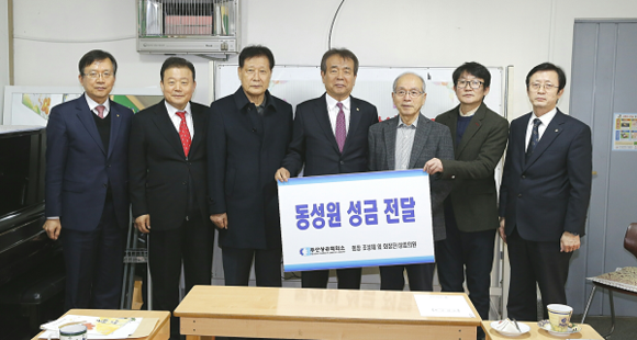 조성제 부산상공회의소 회장을 비롯한 회장단은 18일 오후 금정구 아동양육 시설인 '동성원'과 해운대구 장애인거주 시설인 '인덕원'을 각각 방문해 성금을 전달했다.