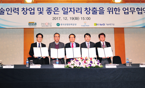 기술보증기금(이사장 김규옥)은 벤처기업협회, 이노비즈협회, 한국산업인력공단, 한국폴리텍대학과 19일 서울가든호텔에서 '기술인력 창업 및 좋은 일자리 창출을 위한 업무협약'을 체결했다.